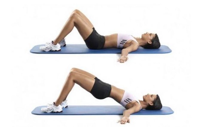 Now lift your pelvis so that your thighs and torso form a straight line at approximately a 45-degree angle to the floor. Tighten the gluteal muscles of your buttocks.