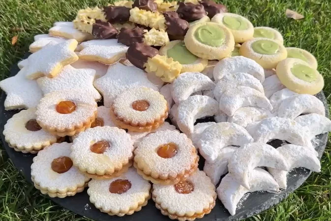 The idea that you can bake several kinds of Christmas cookies from a single dough sounds like a dream. But this recipe really delivers. From one basic buttery dough you can easily make five different variations – from nutty and coconut cookies, through fresh lemon Linzer with jam, to chocolate and pistachio pieces. Ideal when you want a rich Christmas plate but don’t want to spend days at the counter making ten different doughs.