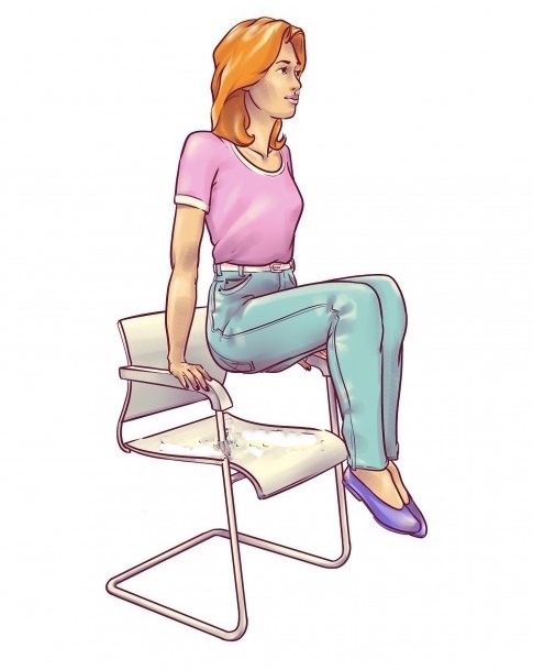 1. Sit on the front edge of the chair and firmly grab the backrest with both hands.