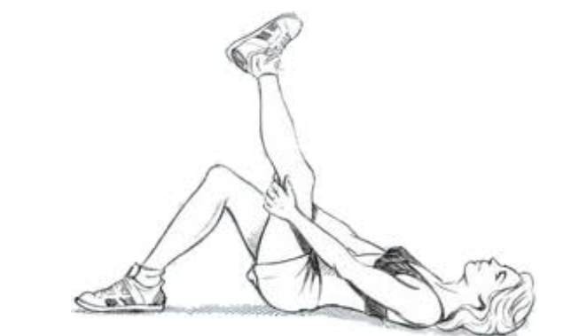 Exercises to relieve pain in the lower lumbar spine and lower back. Hold the position for 30 seconds. Then repeat the exercise with the other leg.
