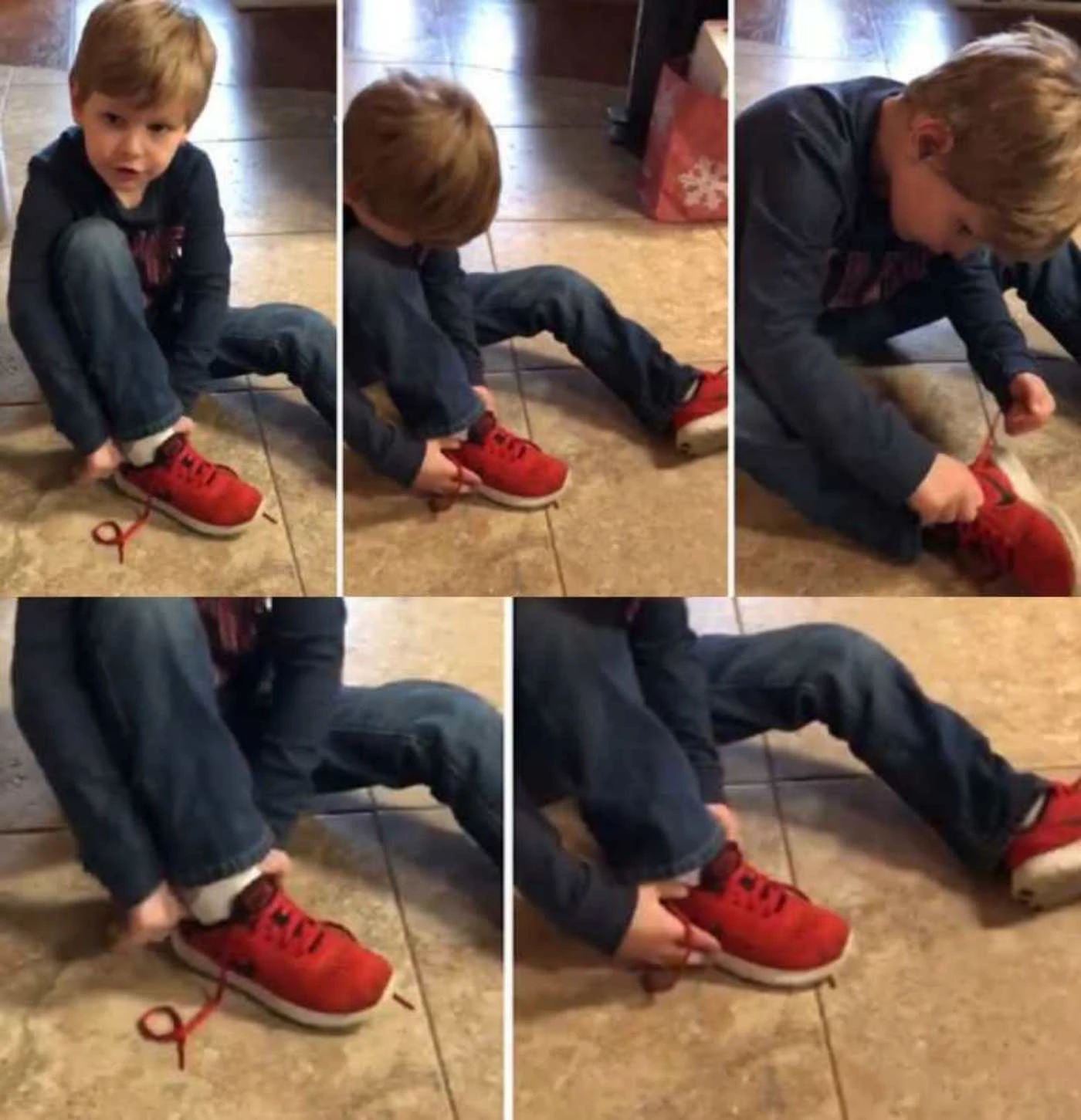 Tying shoes is an important step toward independence for children. Thanks to the simple method shown by the five-year-old boy, this skill becomes easy and fun. If you’re looking for a way to teach your child laces without stress, definitely try this trick.