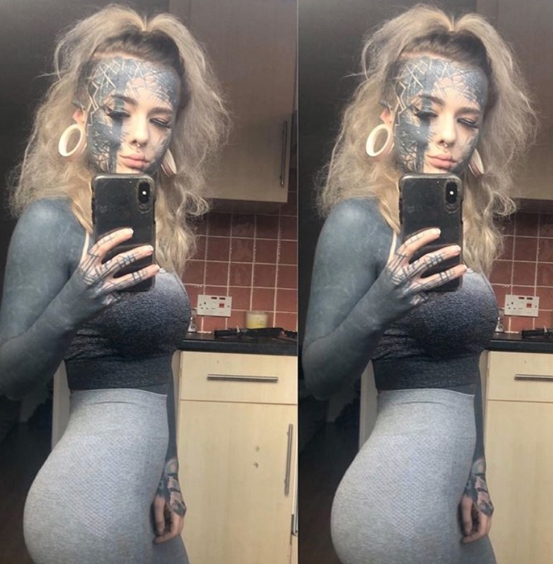 Today the 23-year-old Scotswoman works as a care worker, with nearly 90% of her body covered in tattoos.