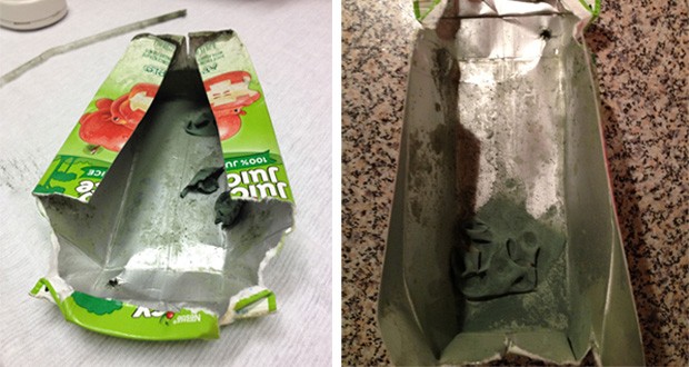 A friend of mine noticed a green slime on the straw he used to drink boxed juice. So he cut the carton open and brought it to show me.