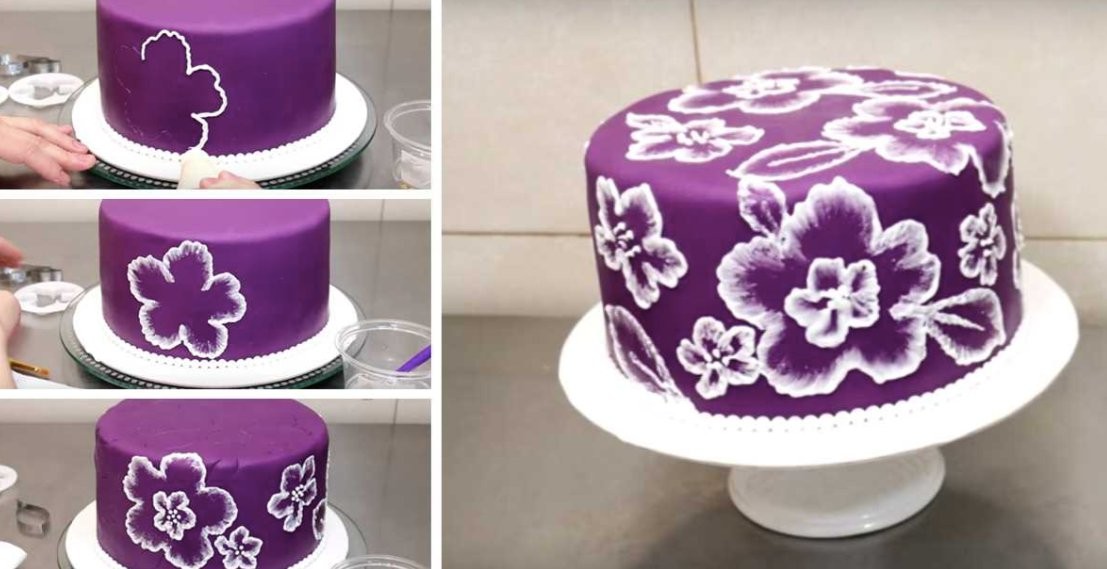 This will serve as a solid base for the decorating mixture. To that add only cutters, a brush, a little water and patience, and an eye-catching and very elegant cake is born.