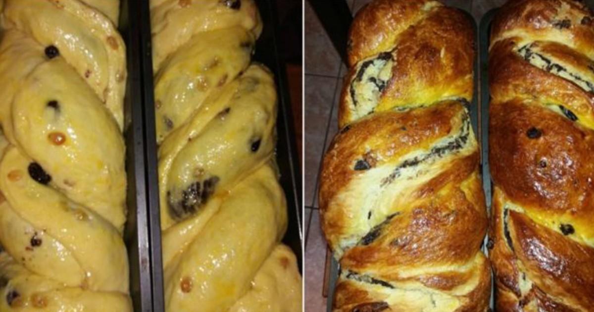 First, dissolve the yeast in warm milk with 2 tablespoons of sugar. Let it rest for 20 minutes. Once it has swollen, add the rest of the sugar, the flavorings, the melted butter and the salt. Then gradually add the sifted flour, the raisins and begin kneading. You should obtain an elastic and firm dough. Put the dough into a large container and leave it in the refrigerator overnight or for a maximum of 24 hours. Take the dough out of the refrigerator 30–50 minutes before you start working with it.