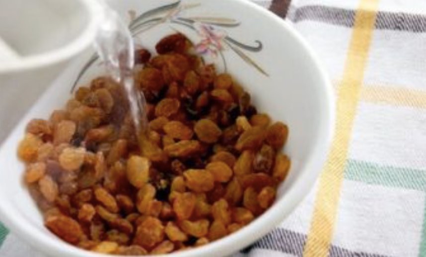 Wash the grapes. Bring the water to a boil and add the washed raisins to it. In any case, boil for 20 minutes. Then turn off the water and let the raisins steep overnight.