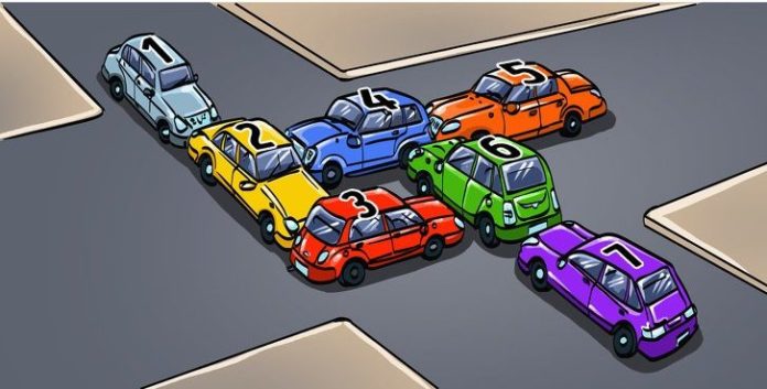 You’ll really have to think hard about the following picture puzzle. In the image you can see a group of cars that have gathered in the middle of an intersection.