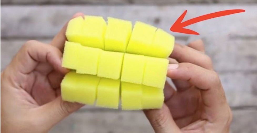 A hard-to-reach place can be, for example, a fan. All you have to do is make several crosswise and lengthwise cuts into the sponge.