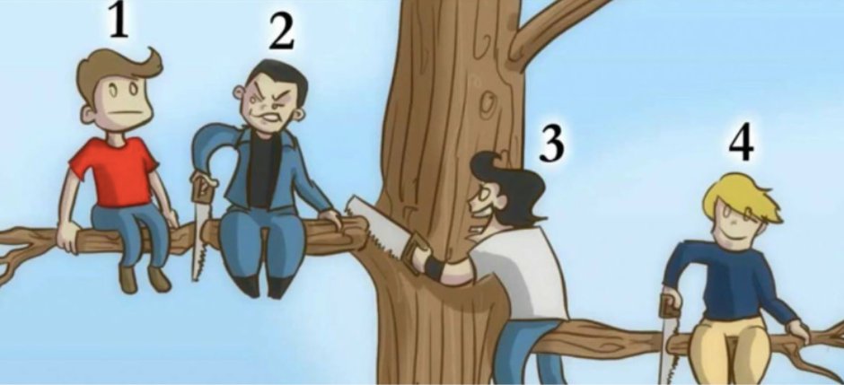 In the picture you see 4 people who are climbing a tree. Your task is to uncover which of these people is definitely the dumbest.