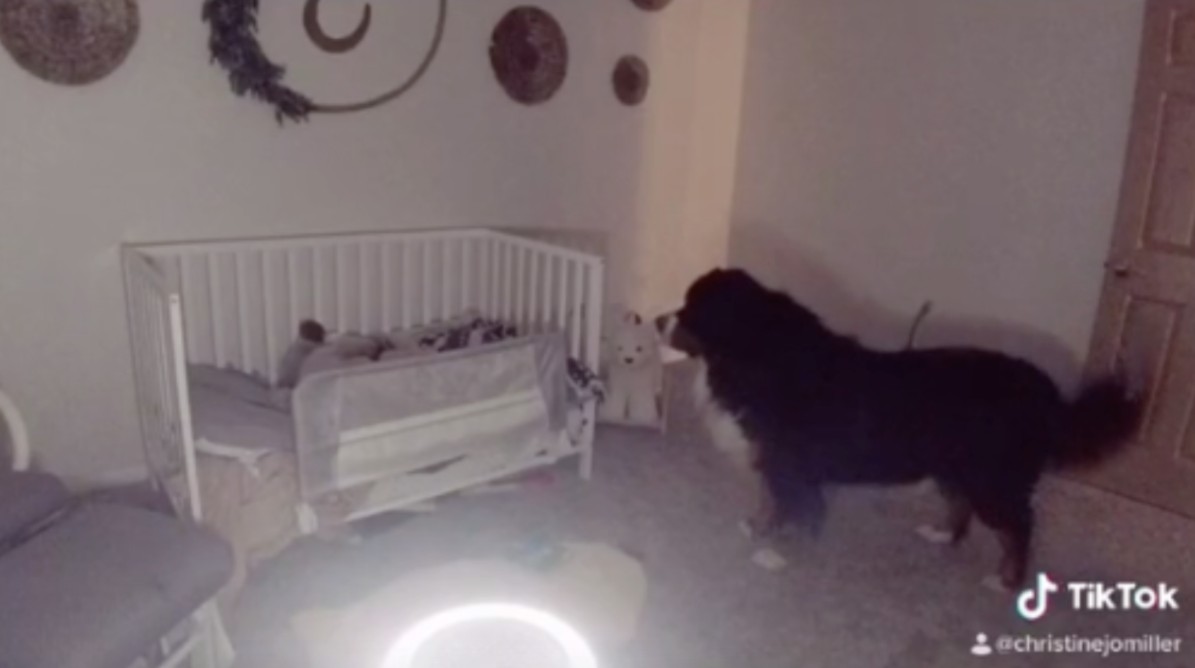 A video camera captured a dog who sits by a sleeping baby every night. The reason why he does it will move you!