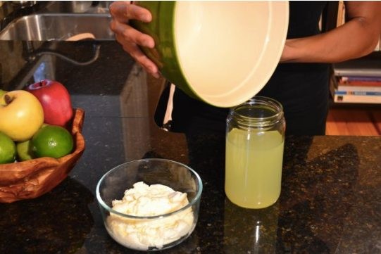 Goat whey is the best. The most important thing is that the milk does not come from animals that were fed hormones. From 2.5 liters of milk you will obtain 2.3 liters of whey and cheese.