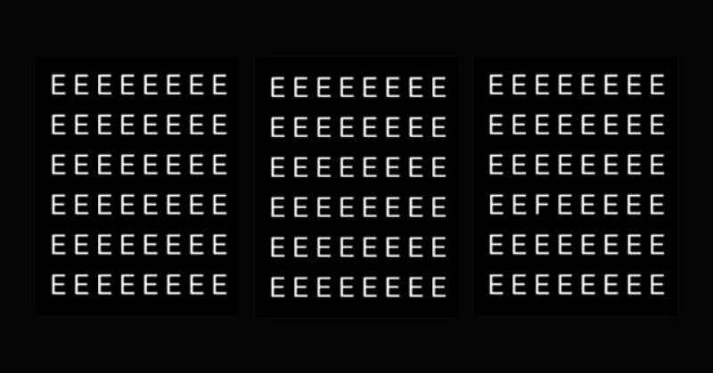 In the image you will see, there is a large number of letters „E“. But beware, one letter „F“ is hiding among them. Your task is to find this hidden letter. It may be a challenge, but we believe you can do it!