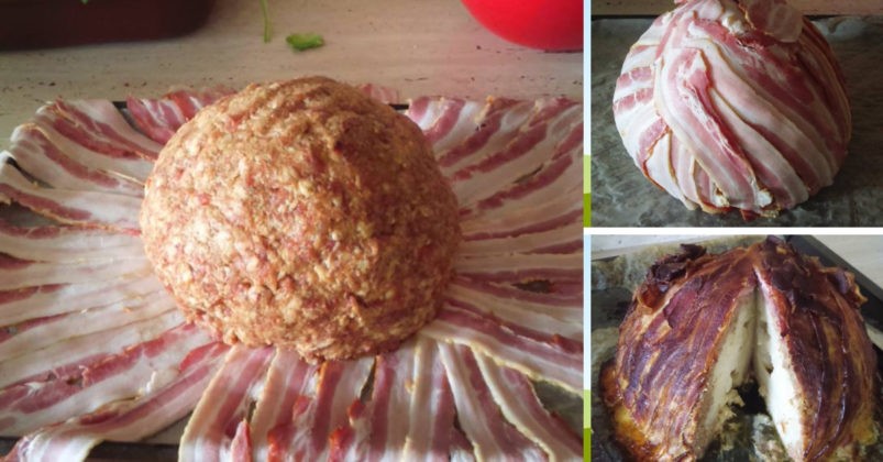 If you don’t know what to prepare for lunch, this recipe is very easy and even children can manage it. You’ll need only a whole cauliflower, ground meat, bacon, pepper, salt and other seasonings to taste. Then simply boil the cauliflower in salted water until half‑soft, then line a baking tray with parchment paper. Prepare the ground meat, add the spices, wrap it around the whole cauliflower and then place it on the tray and wrap the whole thing in bacon.