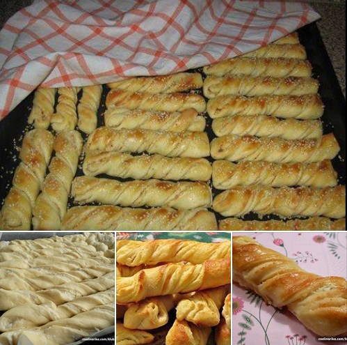 Mix all the ingredients to make the cheese filling. Roll out the risen dough into a rectangle and spread half of the prepared filling on it. Then fold the dough again, spread the other half of the filling, fold again, and roll with a rolling pin to a thickness of about 1 cm. Then cut into sticks, place on a baking tray lined with baking paper and let them rise a little longer. Then brush with beaten egg, optionally sprinkle with, for example, sesame seeds or poppy seeds, and bake for about half an hour at 180 °C.