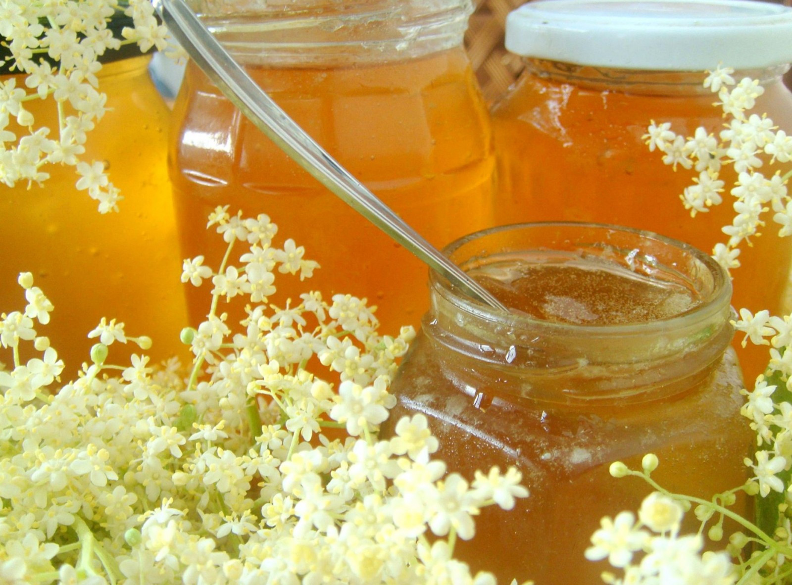 Elderflowers are still blooming here; recently I made this excellent jam from the flowers.