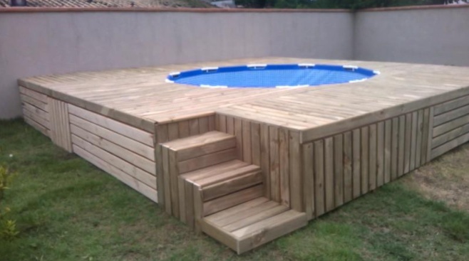 With this inspirational design you can turn an ordinary pool purchased at the supermarket into something that looks like a luxurious spa-style pool. All you have to do is build a wooden structure around the pool that will serve as a platform, allowing you easy access to the water. No more climbing a ladder!
