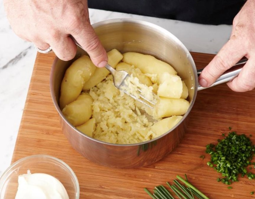 „Potatoes have a delicate flavor profile. If you boil them in water and then drain it, you will lose all of the potatoes’ flavor“, says the chef.