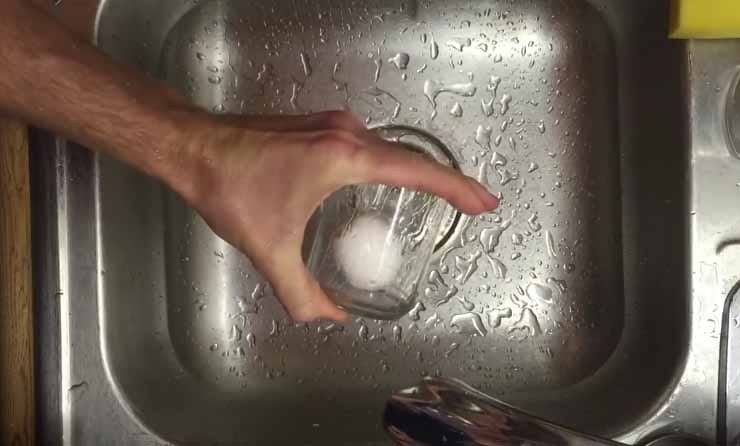 Now the most important part! Cover the top of the glass with your palm and shake it thoroughly for 3–5 seconds. Then remove the egg, already peeled. Often you may end up damaging the egg. Therefore it is certainly advisable at first to try this method with different intensities of force.