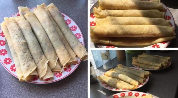 Always heat the pan well, because that can also have a big effect on whether you succeed with the first pancake. If it doesn’t want to separate from the pan, use more fat. However, the problem may be in the batter itself or in a poorly heated pan. Every batter must contain a pinch of salt. If you want very thin pancakes, use enough milk. Thanks to the flour the batter, on the other hand, holds together; always use plain flour, because you won’t get them thin with semi-coarse flour.