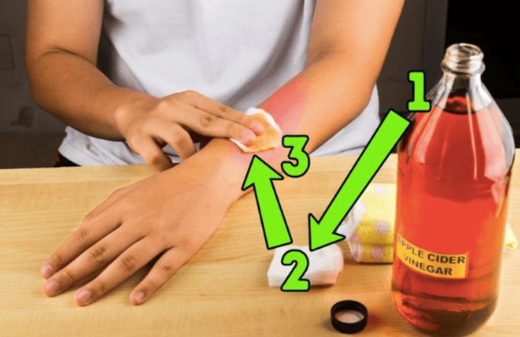 4. Soak a cotton ball in apple cider vinegar and squeeze it so the vinegar doesn’t drip everywhere. If you don’t have apple cider vinegar, ordinary vinegar can be used.