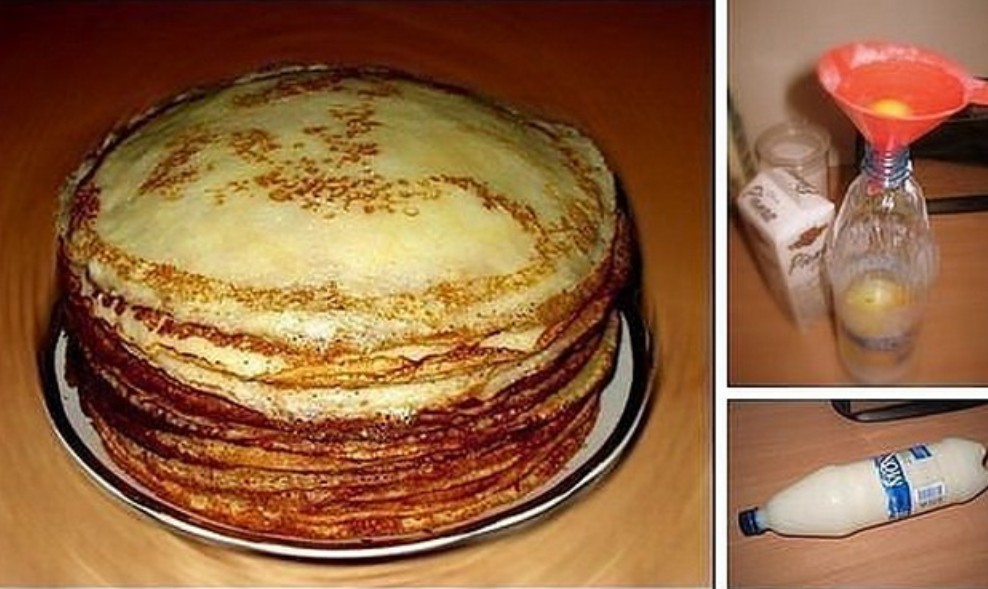Aren’t you tired of cleaning the kitchen and washing a mountain of dishes after every time you fry pancakes? Pancakes would be such a simple and quick meal if it weren’t for the mess everywhere and the endless tidying. But if you use this bottle recipe, you can simply throw the bottle away after the batter is used up and you won’t have to deal with any piles of dishes or a messy kitchen in the form of flour scattered all over the kitchen. To prepare the batter, get a beverage bottle with a stopper and these ingredients: