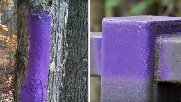 Instead of warning signs on private property, landowners can paint fences and trees marking the boundaries of their property with purple paint.