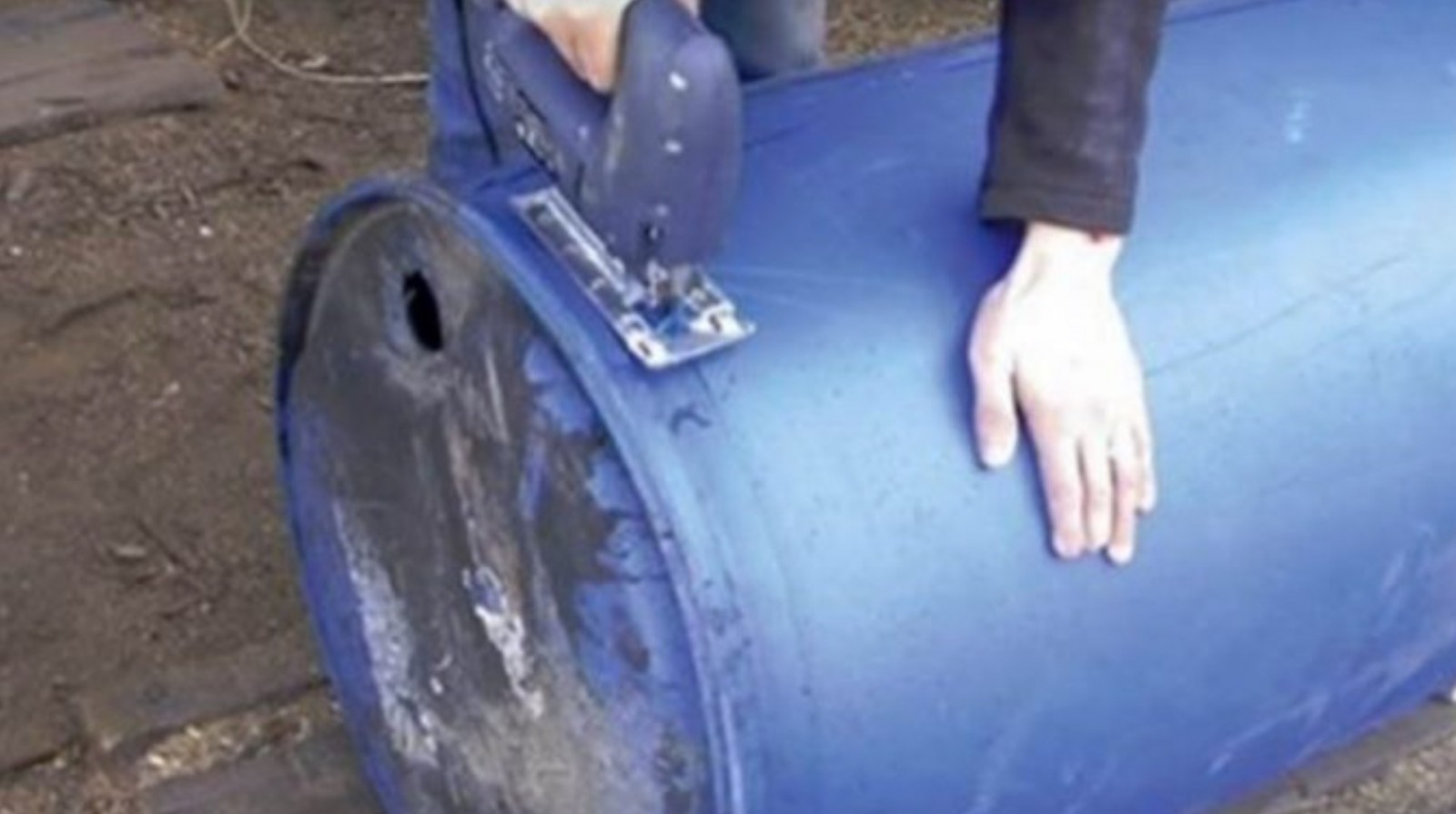 The man took an ordinary blue plastic barrel out of the shed, exactly the kind used for fermenting plums. He placed it on the ground in the garden and sawed off the top and bottom. The remaining cylinder was then gradually cut into thin strips. In total he cut out