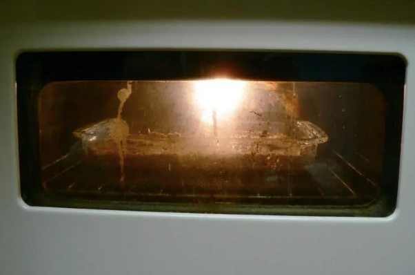 Put the rest of the mixture in a suitable bowl into the oven and set the temperature to 100 degrees. Let it heat for 45 minutes and then just wipe it off lightly. That’s it, the dirt is gone in one swipe, without effort and without expensive chemicals.