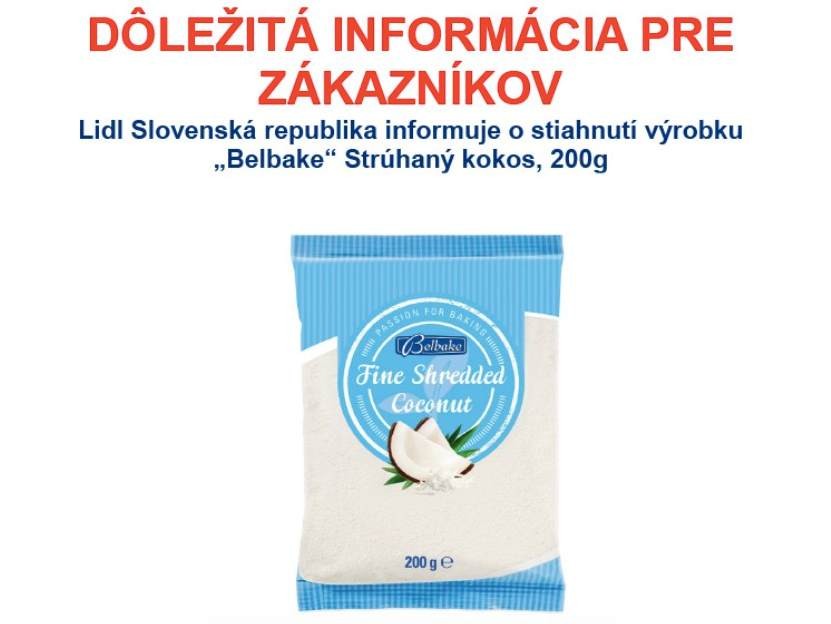 ,, Lidl Czech Republic informs about the withdrawal of the product ,, Belbake “Grated coconut, 200g, best before date: 21.11.2019, batch 34188. The product may contain the preservative sulfur dioxide, which is not declared on the product,” it states in the notice to customers.