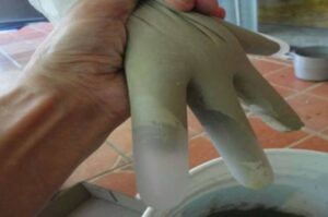 All you need are rubber gloves and cement to create a garden decoration that scares people
