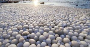 Thousands of ice eggs of various sizes filled a beach in Finland over the weekend