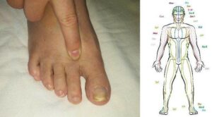 She pressed this point on the foot for a few seconds and miracles happened. The Chinese call it the "point of a happy life." Try it yourself.