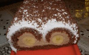 "Cat's eyes"- a delicious roulade with banana inside, which I always make when the grandchildren are coming to visit.
