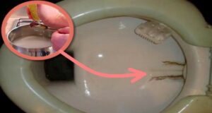 At the cottage we had a tarnished toilet bowl. But then my mom cleaned it this way and it's like new.