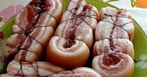 Speck with an onion-garlic crust: great for sitting down with a beer, and you can keep a supply in the freezer!