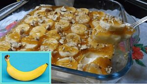"Banana Bowl" is an excellent dessert with milk, banana and caramel sauce.