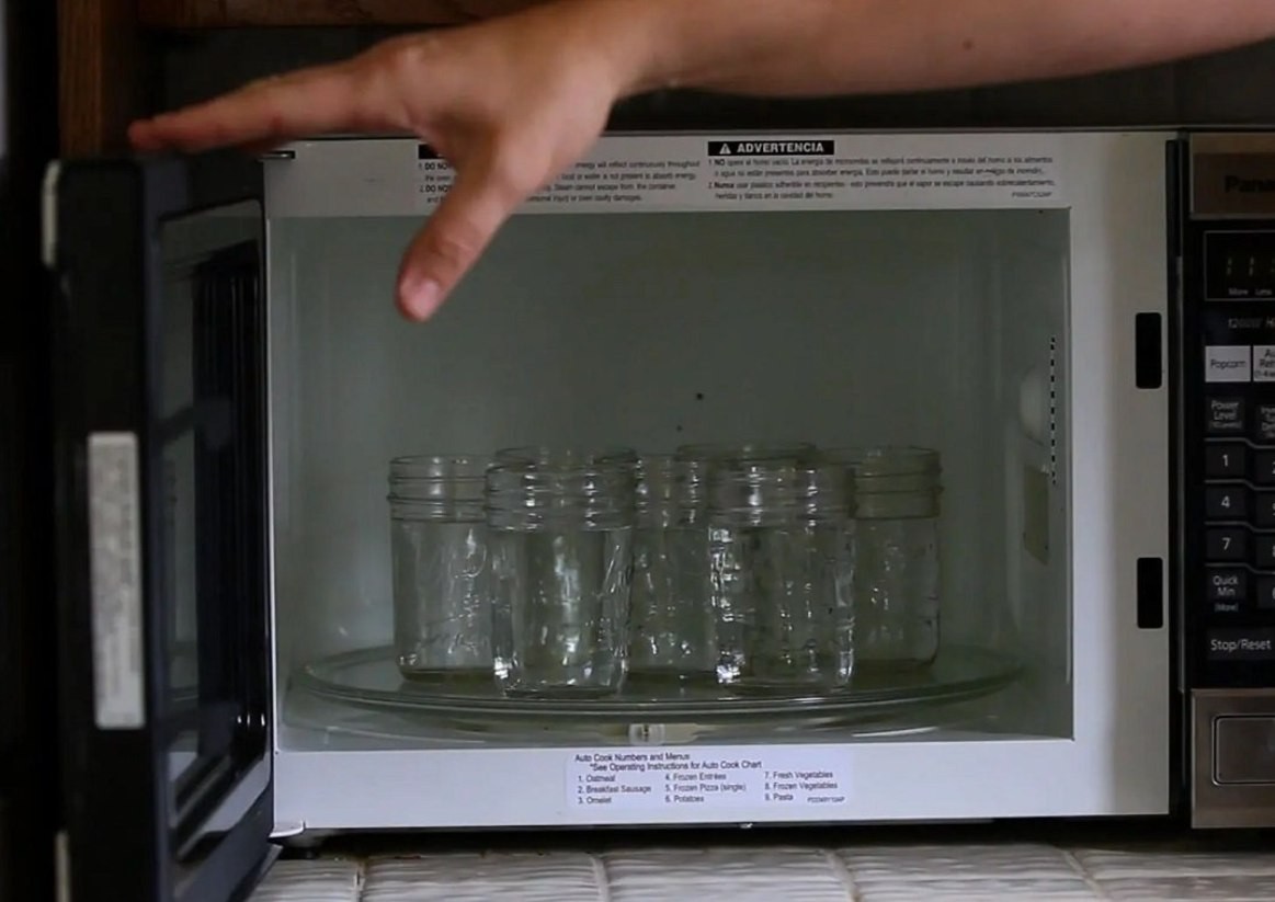 Rinse jars and put them in the microwave. Turn it on at full power for 1.5–2 minutes. This time should be sufficient to evaporate the water. The jars will dry quickly and be ready for further use.