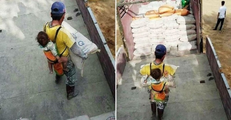 There are people who give up work because of a child. That’s how it most often works for us. The mother stays at home with the child and the father goes to work. However, there are also situations where childcare is left to a third person and both parents go to work. And then there are individuals who take their children with them to work. One such case is the situation of a man who worked with a child on his back.