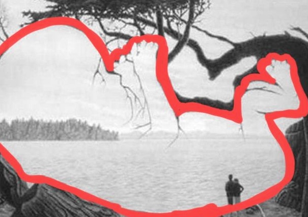 Look at the picture and tell me, how many people do you see here? At first glance the answer seems obvious, because two silhouettes immediately catch our eye. However, look more closely — there is a hidden image of another person.