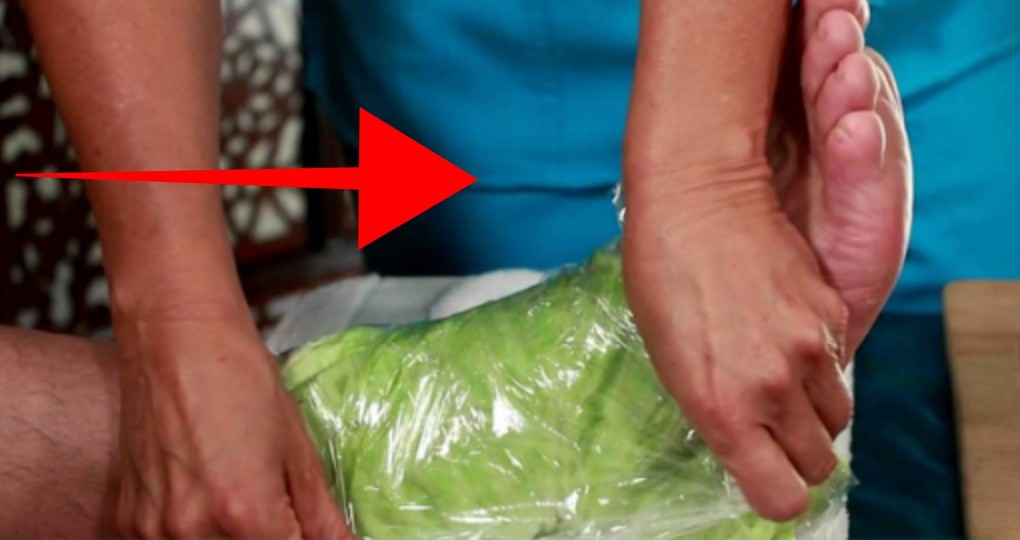 • Then place the cabbage leaves on the knee and wrap with gauze or cloth.