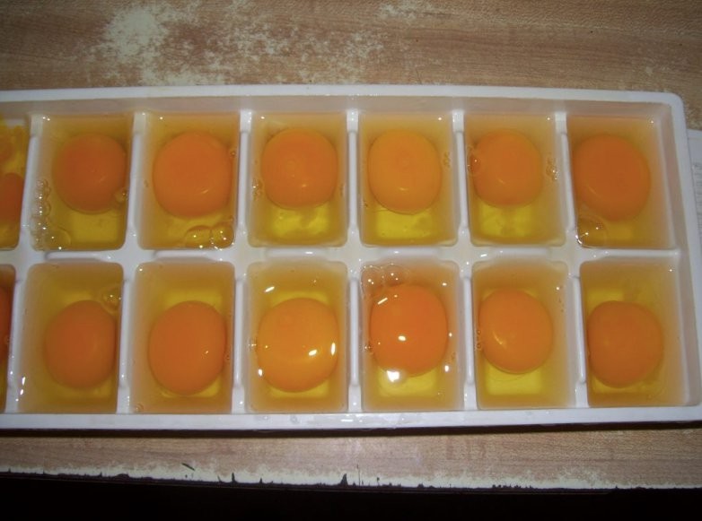 Into the ice tray you have at home, you can safely place whole eggs, or you can conveniently beat the eggs and fill the ice tray with beaten eggs.