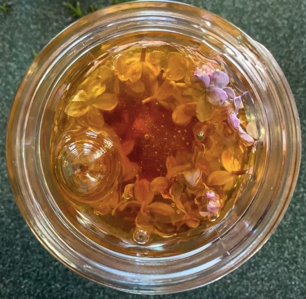 • When you have a jar full of flowers, pour honey over them so that the flowers are completely submerged.
