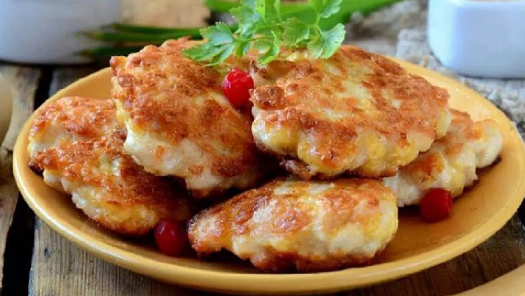 2. Mixing the ingredients: Cut the chicken breasts into small pieces and mix them with the grated cheese. Add the egg, flour, salt, and pepper to the mixture to taste. Thoroughly mix the mixture so that all ingredients are well combined.