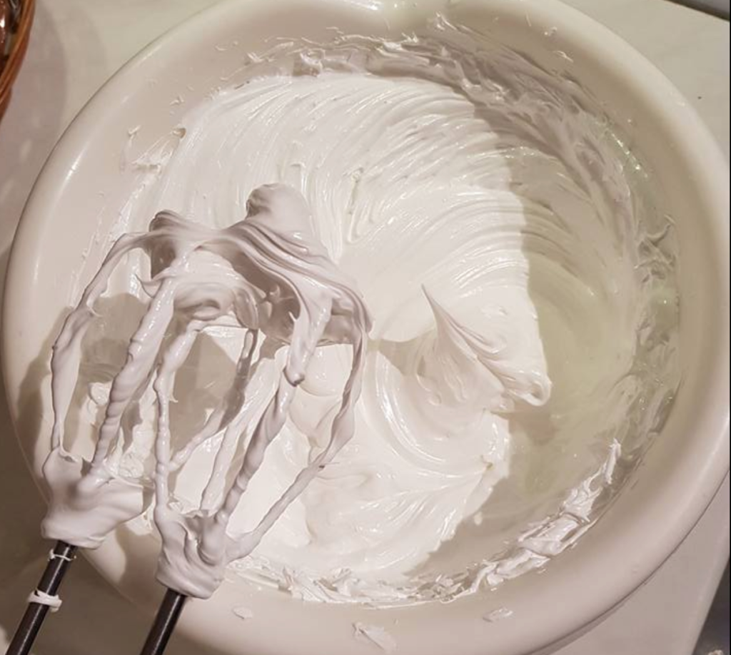 • Preparing the cake base Whisk the egg yolks with the sugar until thick and frothy. Pour in the hot water and oil. Gradually add the flour mixed with the baking powder. Finally, gently fold in the egg whites beaten with a pinch of salt. Spread the batter on a greased and floured baking tray measuring 40x27 cm. Bake in a preheated oven at 170 °C for about 20 minutes. After baking, let the cake base cool.