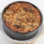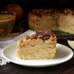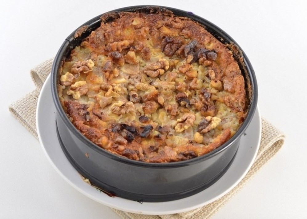 - Mix 1 egg with the sugar and two tablespoons of melted butter. Pour over the baked cake and add the walnuts on top. Bake for another 15 minutes.