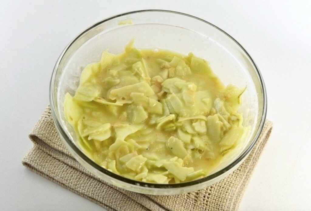 - Slice the apples thinly and add them to the batter.