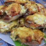 - Place half of the potatoes in it, sprinkle with pepper, put half of the meat on the potatoes, a layer of onion, and finally half of the mayonnaise with the cheese.