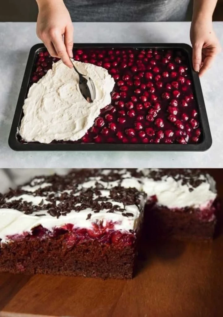 Black Forest sheet cake is a great choice for anyone who loves the combination of chocolate, whipped cream and fruity freshness. It’s easy to prepare, but absolutely luxurious in taste. Treat yourself to this classic dessert that never disappoints!