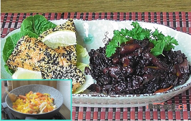 i-Recipe.comRecipesBlack rice with sautéed vegetables and salmon in a sesame crust.