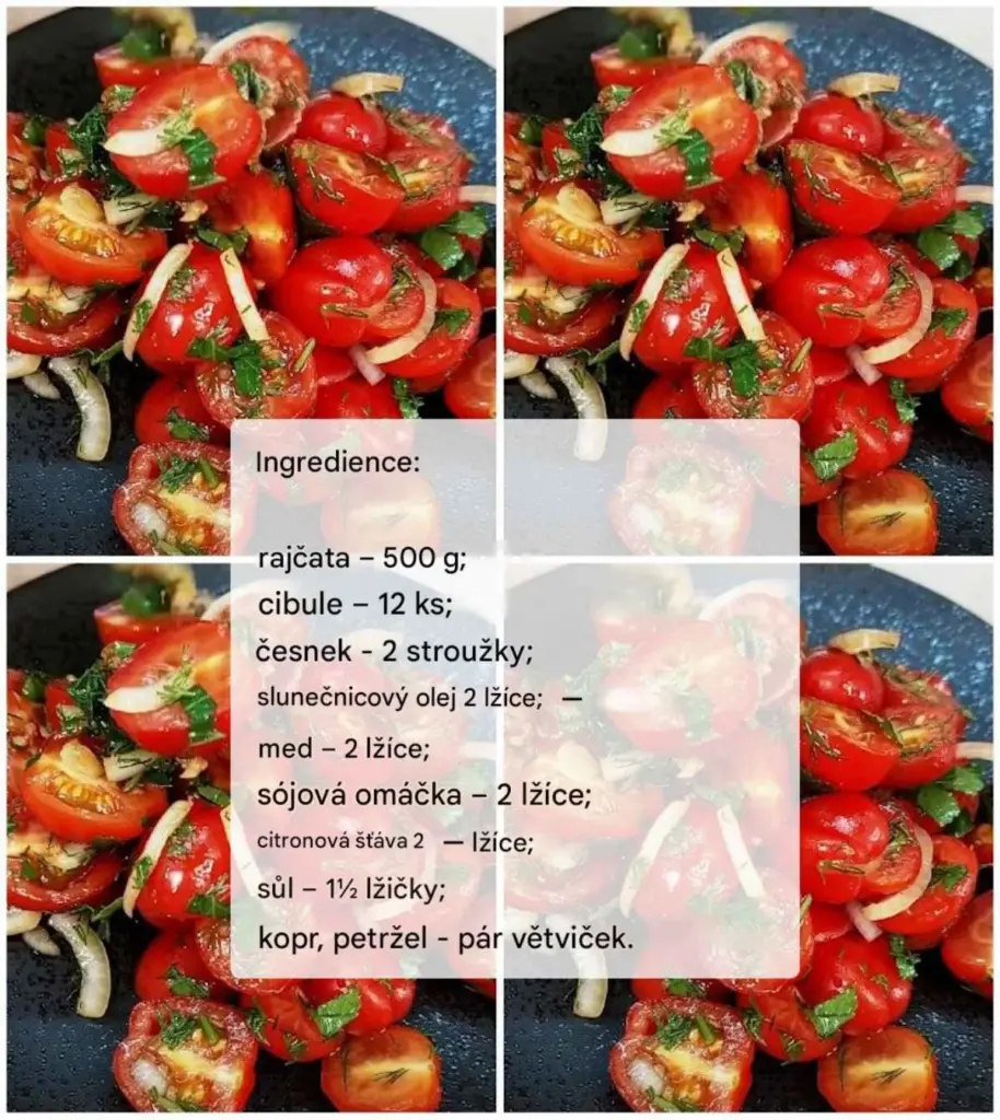 These quick pickled tomatoes are a perfect complement to summer barbecues and quick dinners. Thanks to the honey-soy marinade they gain a pleasant sweet-and-sour flavor, and a pinch of garlic with herbs turns them into a real flavor bomb. Make them whenever you need a light but bold side dish.